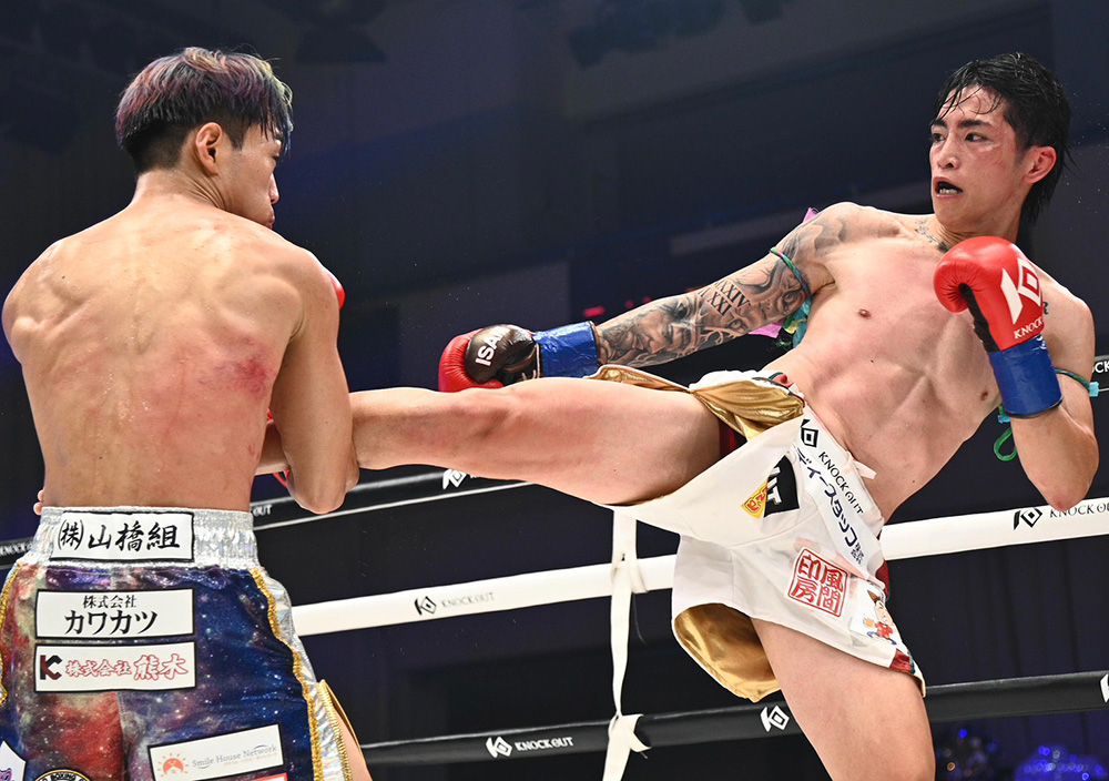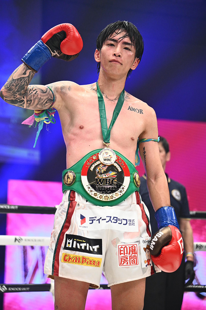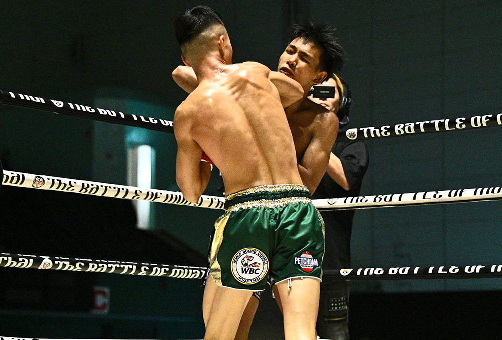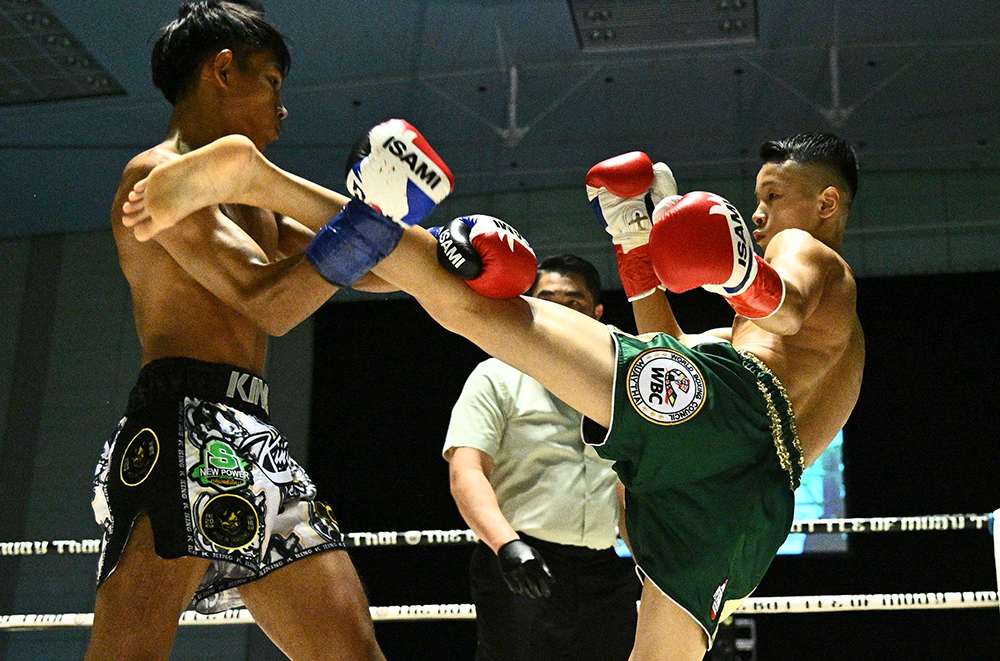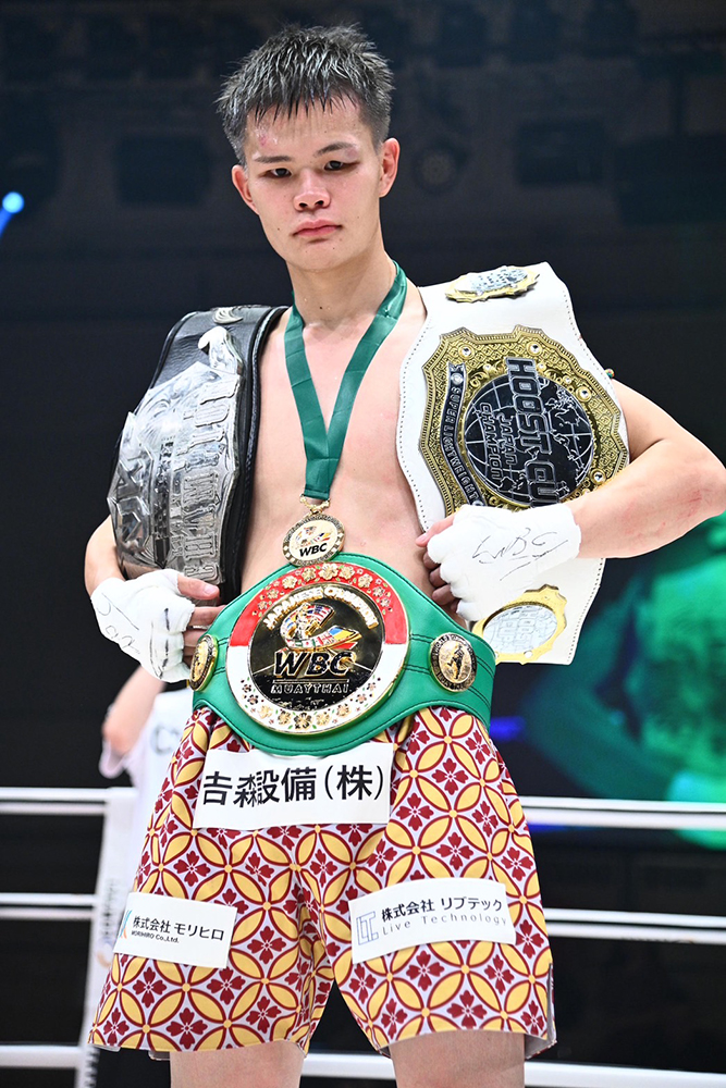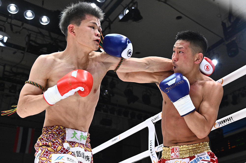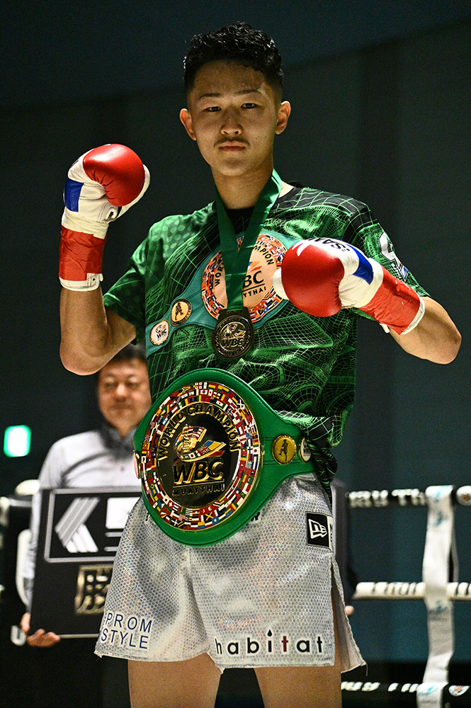 | 竜哉EIWA SPORTS GYM | 現チャンピオン、日本の竜哉EIWA SPORTS GYM選手が3-0(50-49 x3)でタイからの挑戦者Waewow Wor Wangprom選手に圧勝し、1度目の防衛成功! |