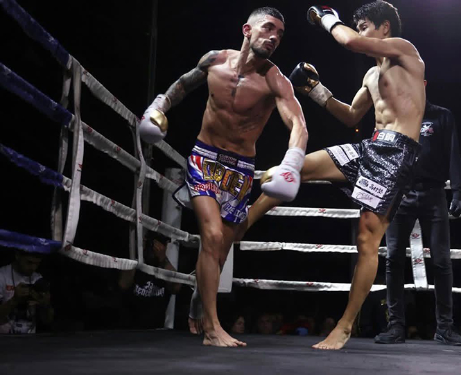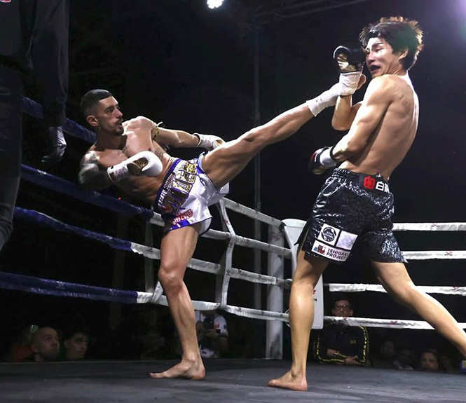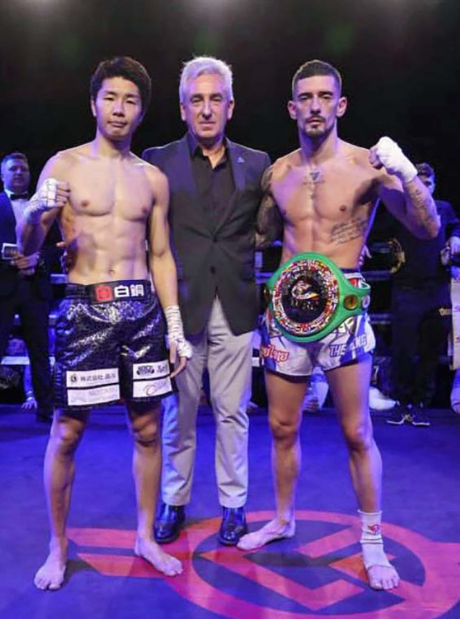 | 士門EIWA SPORTS GYM | 日本の士門EIWA SPORTS GYM選手が、1ラウンド2分33秒左フックでKOし、タイのKaikem Sitphanchai選手に勝利し、新世界チャンピオンに! |